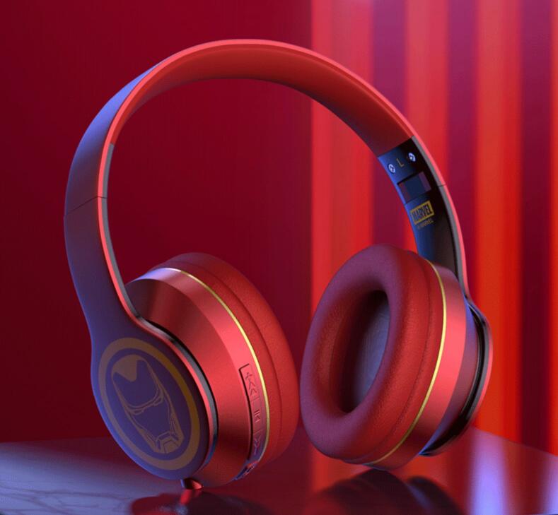 漫威聯(lián)名鋼鐵俠藍牙耳機頭戴式重低音降噪頭戴式耳麥無線雙耳運動音樂游戲手機電腦男女通用2021年新款